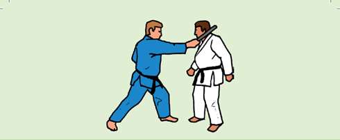 Jodan tsuki ou chudan tsuki : coup de poing droit, à la tête ou au corps. Cible : plexus solaire, estomac ou visage.